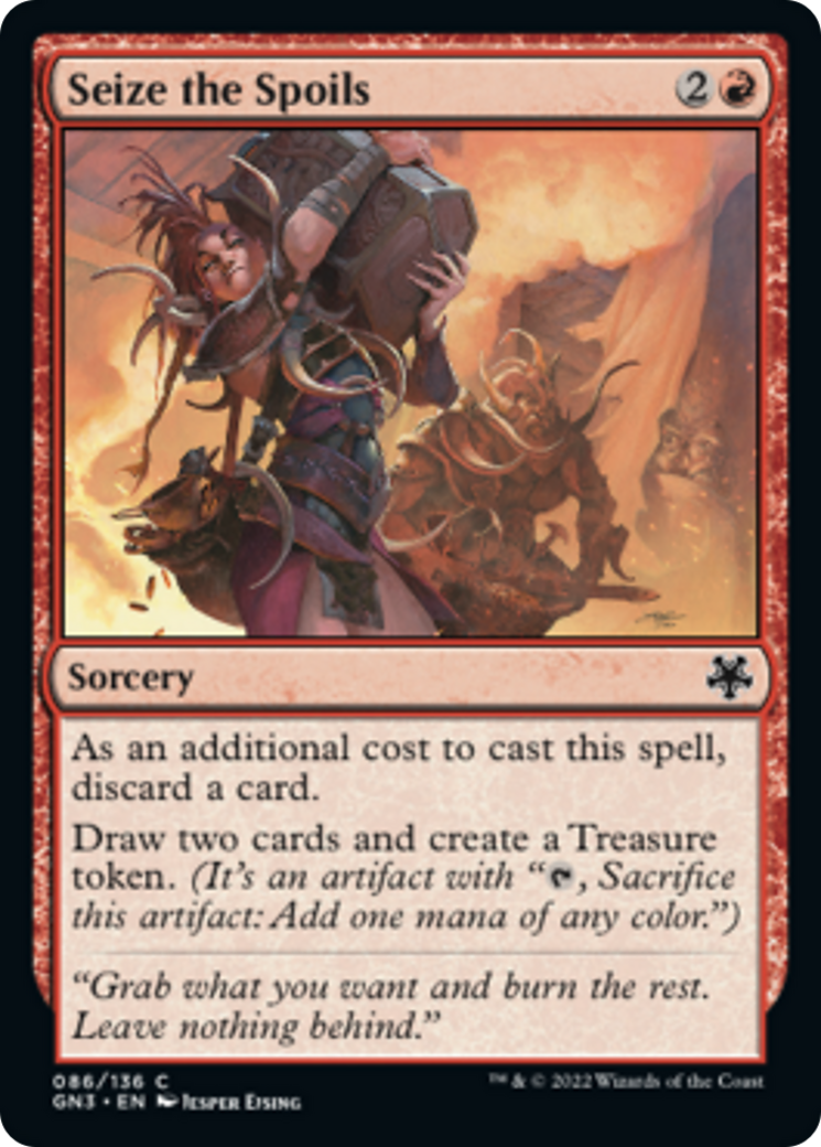 Draw two cards and create a Treasure token. (It's an artifact with "{T}, Sacrifice this artifact: Add one mana of any color.")