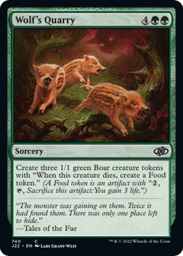 Create three 1/1 green Boar creature tokens with "When this creature dies, create a Food token." (A Food token is an artifact with "{2}, {T}, Sacrifice this artifact: You gain 3 life.")