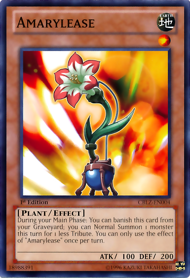 During your Main Phase: You can banish this card from your Graveyard; once during this turn, you can Normal Summon/Set a monster with 1 less Tribute than required. You can only use the effect of "Amarylease" once per turn.