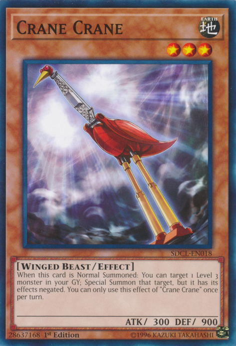 When this card is Normal Summoned: You can target 1 Level 3 monster in your GY; Special Summon that target, but it has its effects negated. You can only use this effect of "Crane Crane" once per turn.
