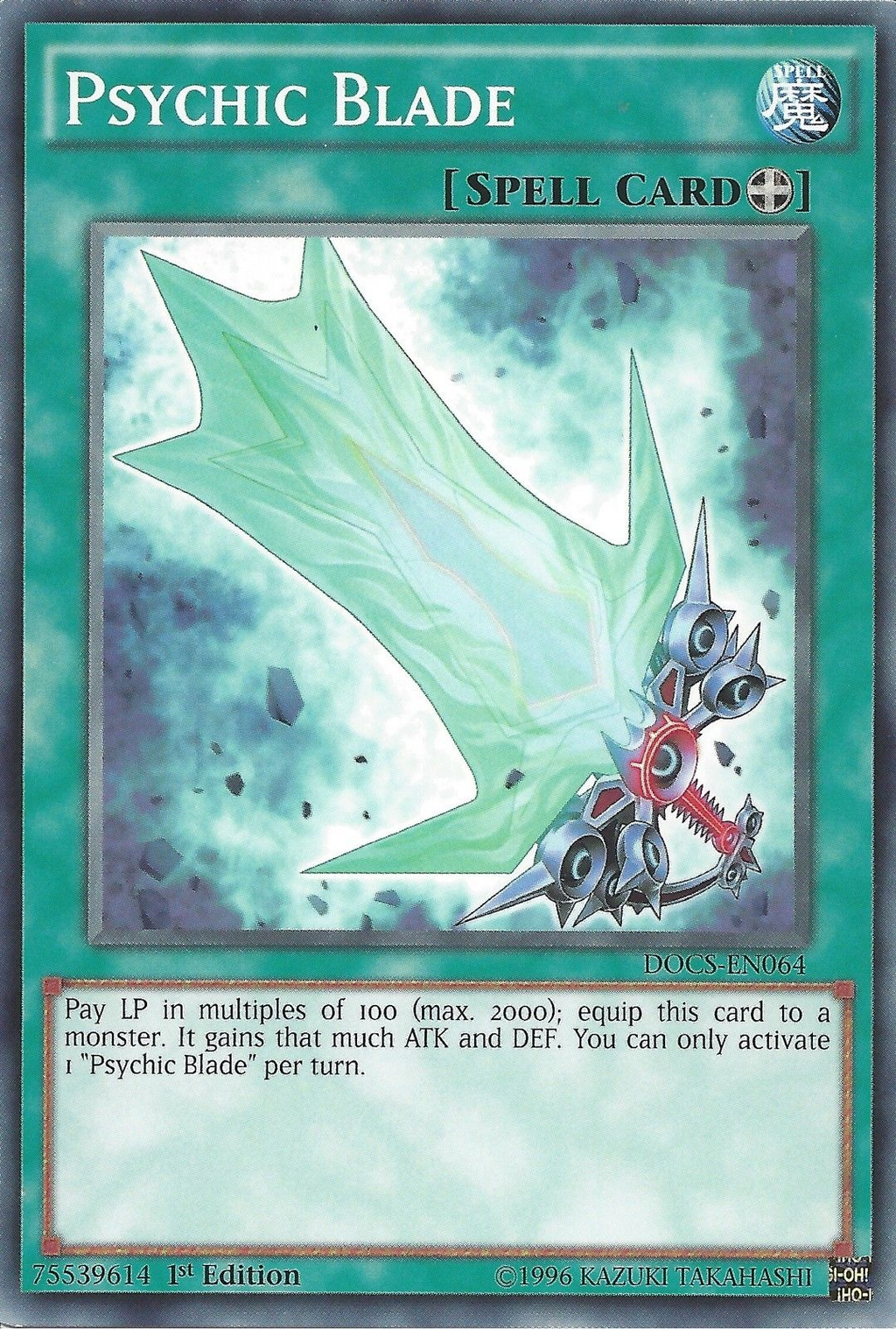 Activate this card by paying LP in multiples of 100 points (max. 2000). The equipped monster gains ATK and DEF equal to the LP you paid to activate this card. You can only activate 1 "Psychic Blade" per turn.