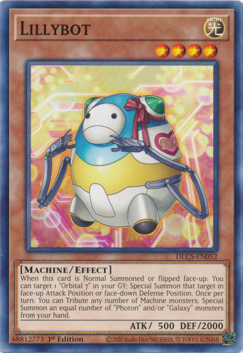 When this card is Normal Summoned or flipped face-up: You can target 1 "Orbital 7" in your Graveyard; Special Summon that target in face-up Attack Position or face-down Defense Position. Once per turn: You can Tribute any number of Machine-Type monsters; Special Summon an equal number of "Photon" and/or "Galaxy" monsters from your hand.