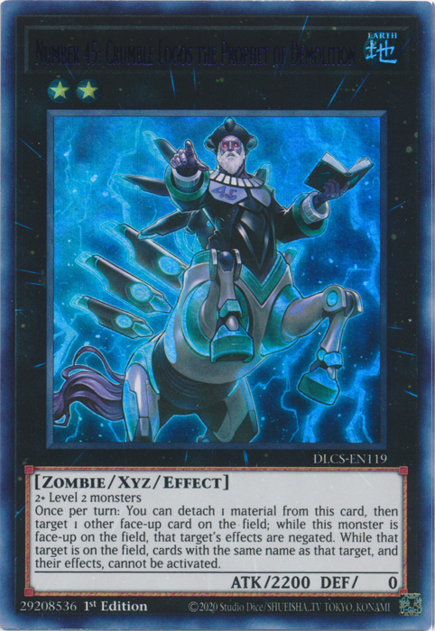 Once per turn: You can detach 1 Xyz Material from this card, then target 1 other face-up card on the field; while this monster is face-up on the field, that target has its effects negated. While that target is on the field, cards with the same name as that target, and their effects, cannot be activated.