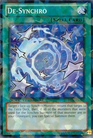 Select 1 face-up Synchro Monster. Return it to its owner's Extra Deck. Then, if all the monsters that were used for the Synchro Summon of that monster are in your Graveyard, you can Special Summon them.