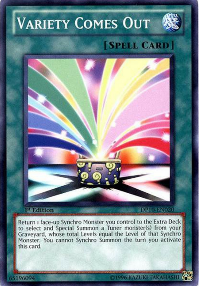 Return 1 face-up Synchro Monster you control to the Extra Deck to select and Special Summon a Tuner monster(s) from your Graveyard, whose total Levels equal the Level of that Synchro Monster. You cannot Synchro Summon the turn you activate this card.