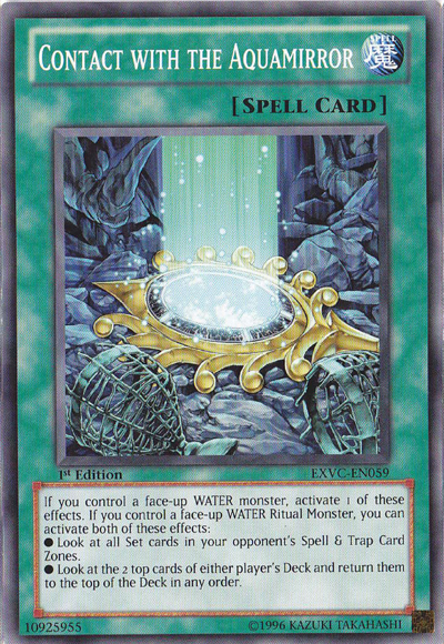 If you control a face-up WATER monster, activate 1 of these effects. If you control a face-up WATER Ritual Monster, you can activate both of these effects: // *Look at all Set cards in your opponent's Spell & Trap Card Zones. // *Look at the 2 top cards of either player's Deck and return them to the top of the Deck in any order.