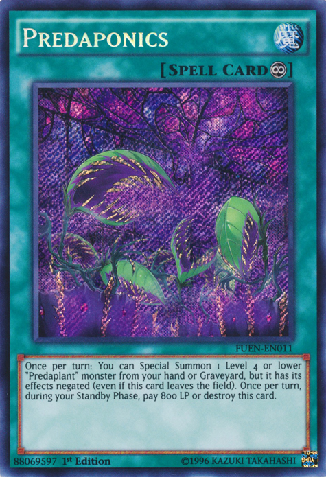 Once per turn: You can Special Summon 1 Level 4 or lower "Predaplant" monster from your hand or Graveyard, but it has its effects negated (even if this card leaves the field). Once per turn, during your Standby Phase, pay 800 LP or destroy this card.