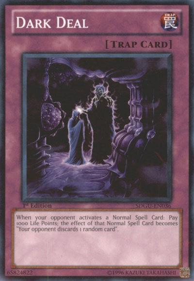 Activate only when your opponent activates a Normal Spell Card. Pay 1000 Life Points. The effect of that Normal Spell Card that your opponent activated becomes "Your opponent discards 1 random card".
