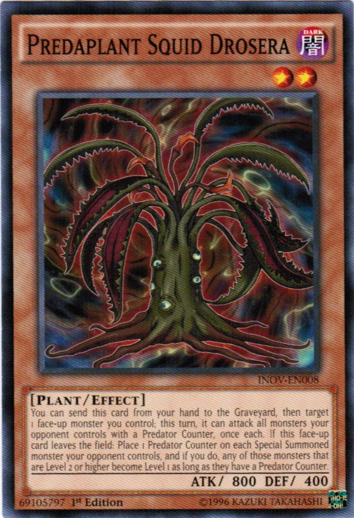 You can send this card from your hand to the Graveyard, then target 1 face-up monster you control; this turn, it can attack all monsters your opponent controls with a Predator Counter, once each. If this face-up card leaves the field: Place 1 Predator Counter on each Special Summoned monster your opponent controls, and if you do, any of those monsters that are Level 2 or higher become Level 1 as long as they have a Predator Counter.