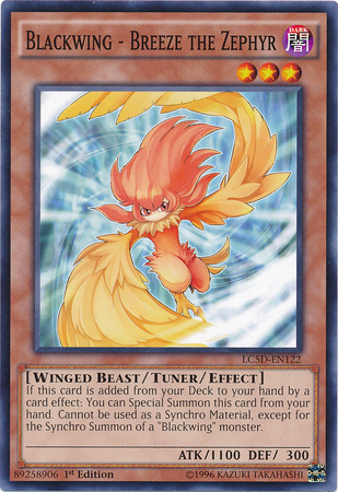 If this card is added from the Deck to your hand by a Spell, Trap, or Effect Monster's effect, you can Special Summon this card. This card cannot be used to Synchro Summon a Synchro Monster except a Blackwing monster.