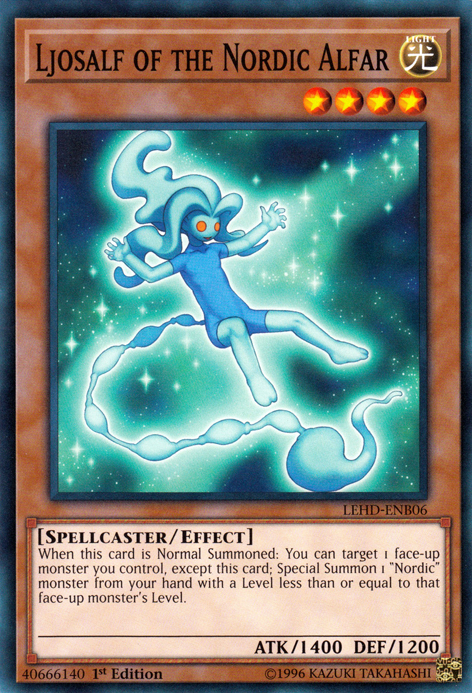 When this card is Normal Summoned: You can target 1 face-up monster you control, except this card; Special Summon 1 "Nordic" monster from your hand with a Level less than or equal to that face-up monster's Level.