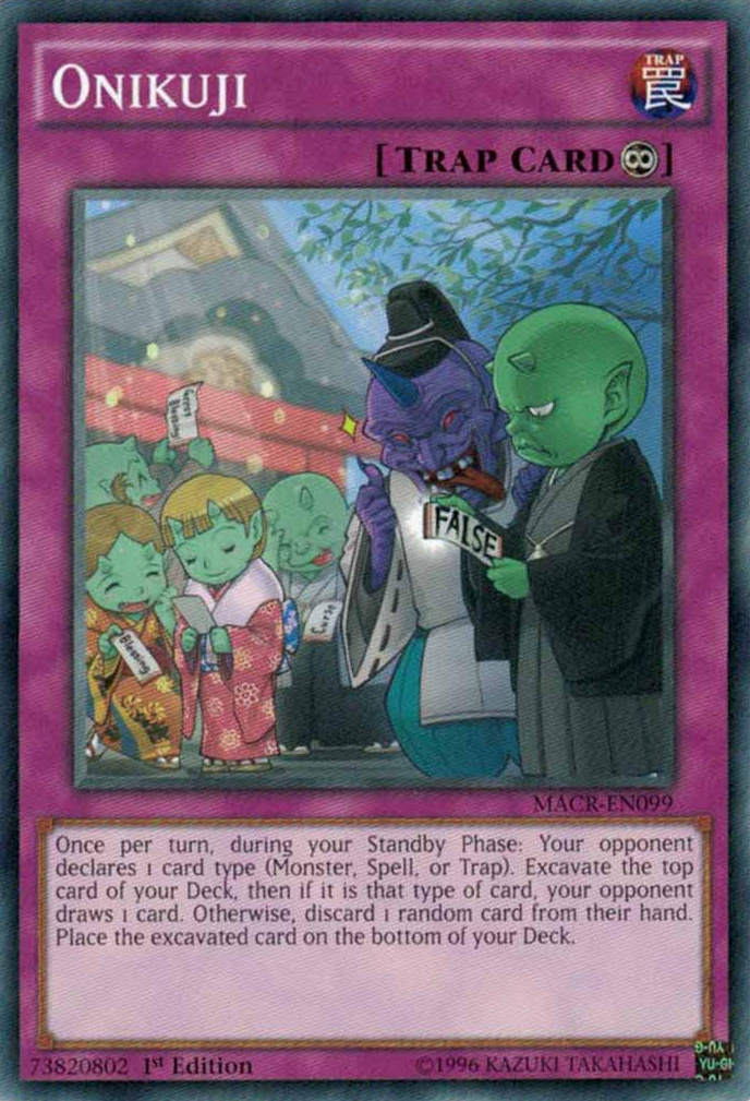 Once per turn, during your Standby Phase: Your opponent declares 1 card type (Monster, Spell, or Trap). Excavate the top card of your Deck, then if it is that type of card, your opponent draws 1 card. Otherwise, discard 1 random card from their hand. Place the excavated card on the bottom of your Deck.