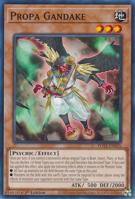 Once per turn, if you control a monster(s) whose original Type is Beast, Insect, Plant, or Rock: You can declare 1 of those Types you control; this card becomes that declared Type. If this card has applied this effect, also apply the following effects while it remains in the Monster Zone.