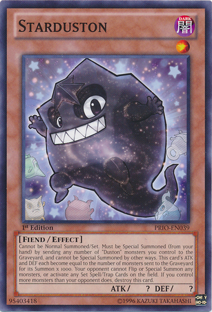 Cannot be Normal Summoned/Set. Must be Special Summoned (from your hand) by sending any number of "Duston" monsters you control to the Graveyard (min. 1), and cannot be Special Summoned by other ways. This card’s ATK and DEF are equal to the number of "Duston" monsters sent for its Special Summon x 1000. Your opponent cannot activate Set Spell/Trap Cards, also they cannot Flip or Special Summon monsters. If you control more monsters than your opponent does, destroy this card.