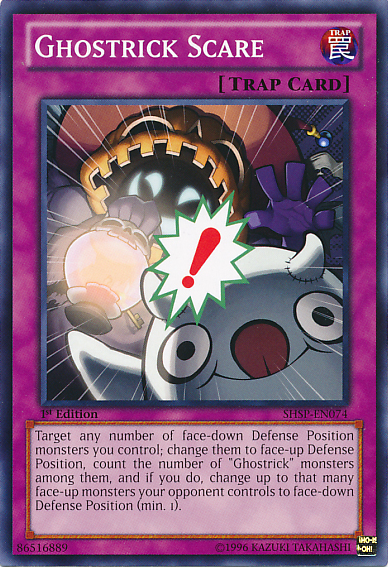 Target any number of face-down Defense Position monsters you control; change them to face-up Defense Position, and if you do, change face-up monsters your opponent controls to face-down Defense Position, up to the number of "Ghostrick" monsters changed to face-up Defense Position with this effect.