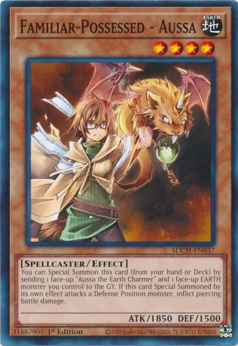 You can Special Summon this card (from your hand or your Deck) by sending 1 face-up "Aussa the Earth Charmer" and 1 face-up EARTH monster you control to the GY. If this card Special Summoned by its own effect attacks a Defense Position monster, inflict piercing battle damage.