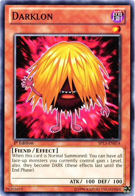 When this card is Normal Summoned: You can have all face-up monsters you currently control gain 1 Level, also, they become DARK (these effects last until the End Phase).