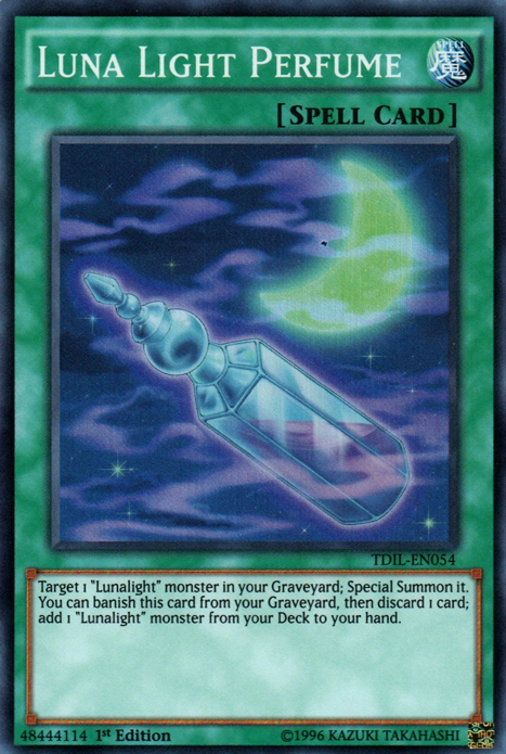 Target 1 "Lunalight" monster in your Graveyard; Special Summon it. You can banish this card from your Graveyard, then discard 1 card; add 1 "Lunalight" monster from your Deck to your hand.
