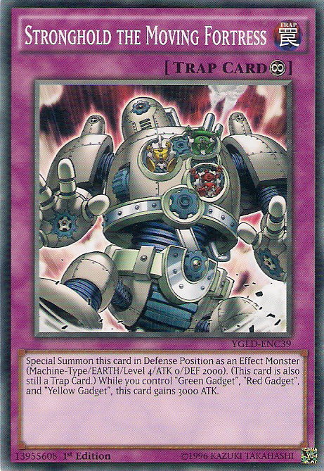 Special Summon this card in Defense Position as an Effect Monster (Machine-Type/EARTH/Level 4/ATK 0/DEF 2000). (This card is also still a Trap Card.) While you control a "Green Gadget", "Red Gadget", and "Yellow Gadget", this card gains 3000 ATK.